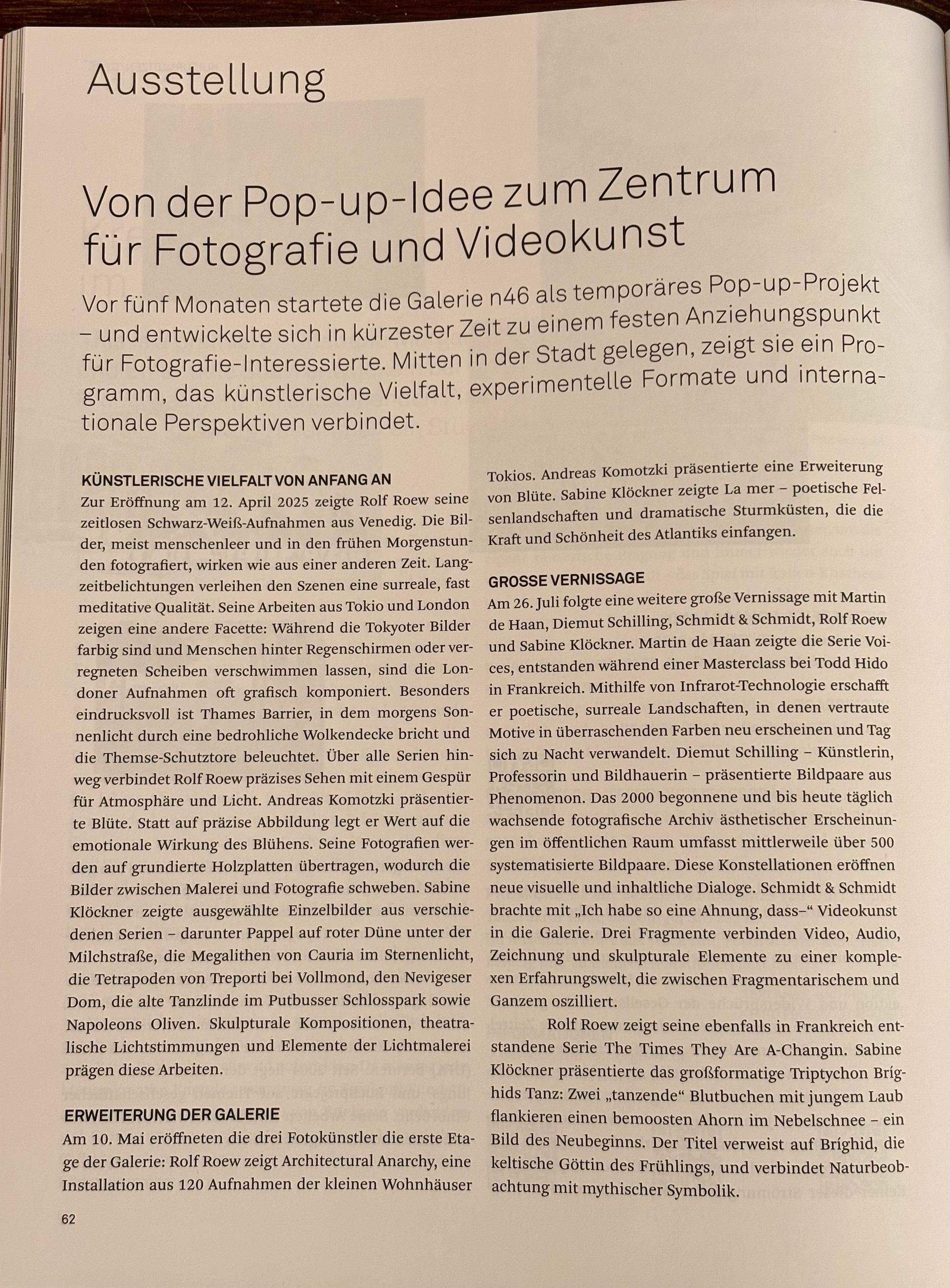 Link zum Artikel in der WZ: Wuppertal: Fotografien von Jürgen Danckwerts in der Galerie n46